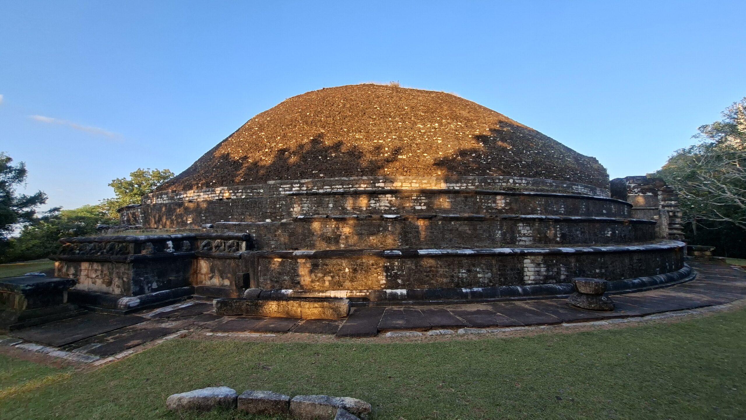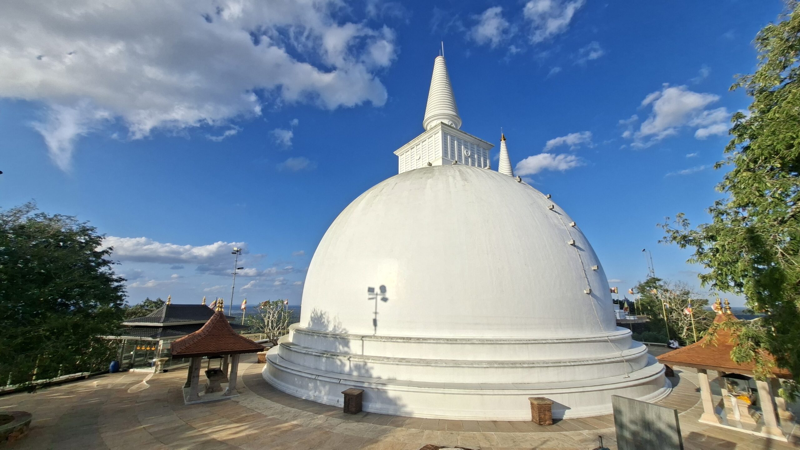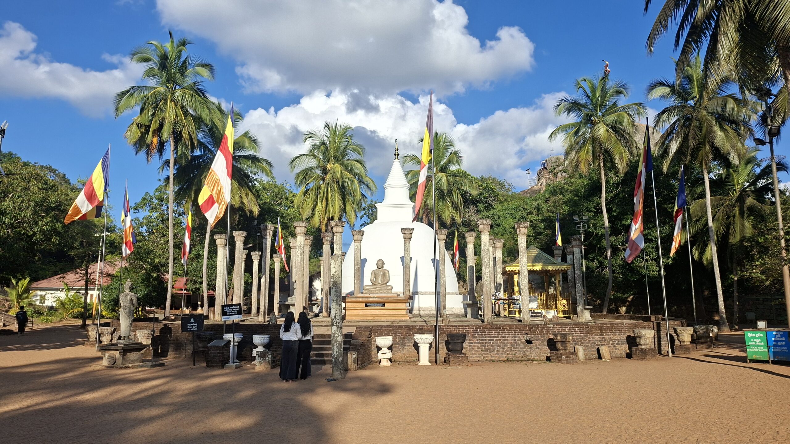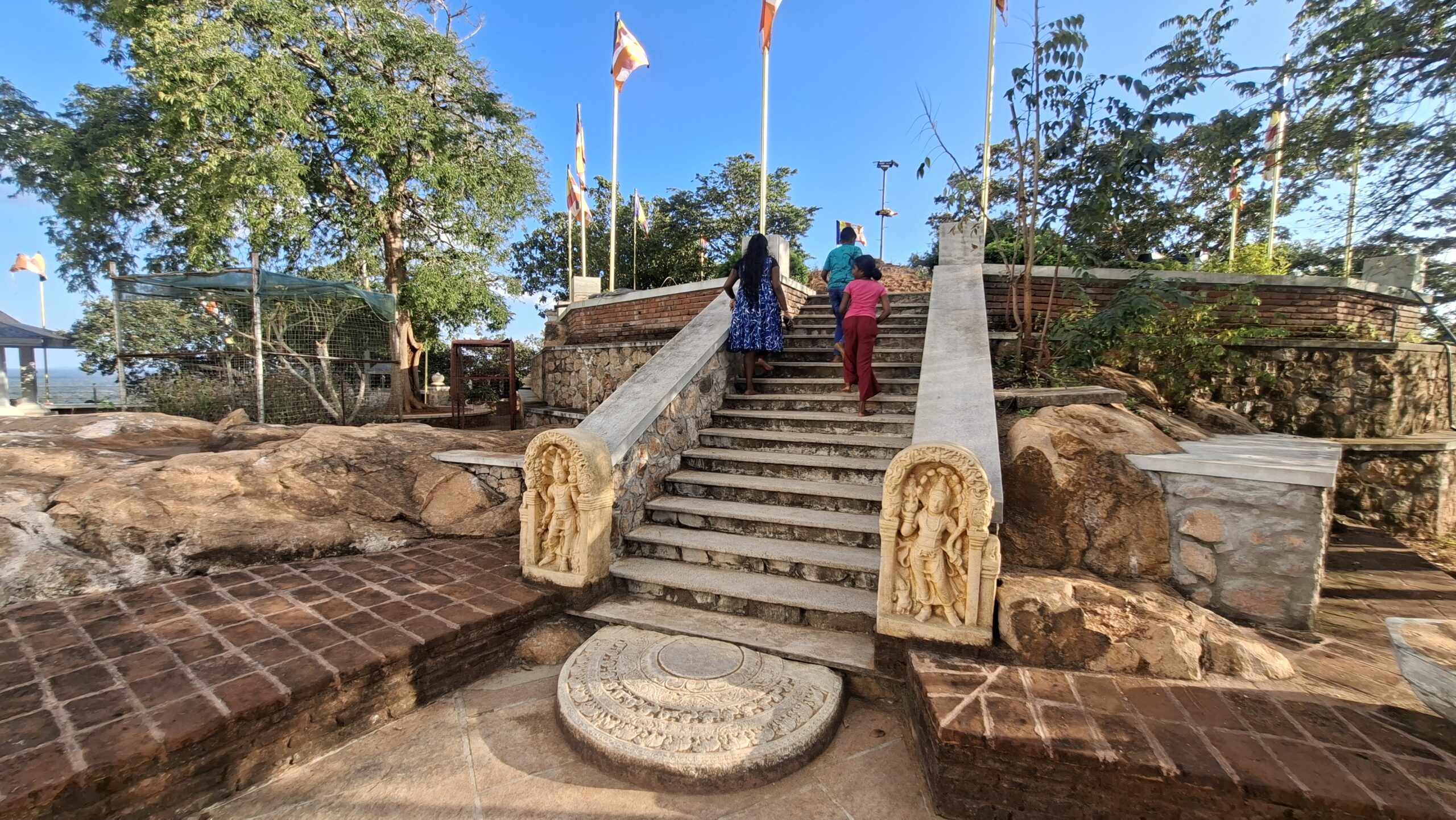 In Anuradhapura haben wir das Glück, dass sich unsere Gastgeber ausserordentlich gut um uns kümmern. Wir werden nicht nur zum Essen in ein gutes, aber preiswertes, Restaurant gefahren, sondern können auch noch eine Führung zu den wichtigsten Sehenswürdigkeiten erhalten. So fahren wir zu dem etwa 12 km entfernten Minhintale, wo der Felsen zu finden ist, wo der Sohn des indischen Königs Ashoka, seinem Freund, dem König von Ceylon, die ersten Lehrstunden im Buddhismus gegeben hat. Hier ist also der Buddhismus auf die Insel gekommen.