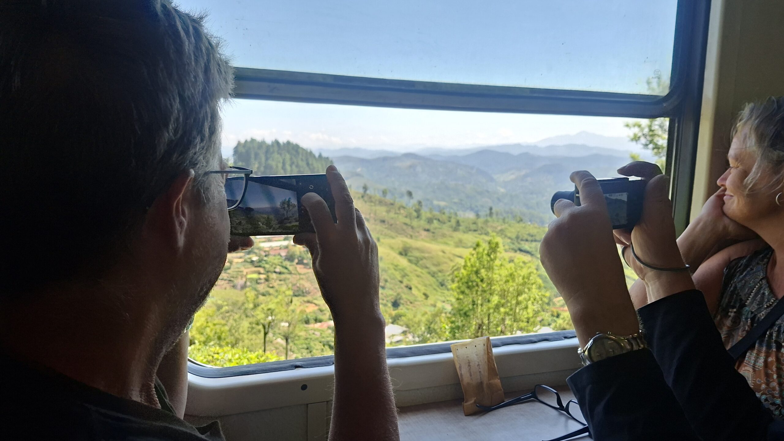 Die Zugfahrt ist weniger spektakulär als unsere Tuktukfahrt, aber wir unterhalten uns prima mit einem schwedischen Ehepaar und natürlich gibt es auch ein paar schöne Bilder. Wir fahren dritte Klasse, da man dort die Fenster aufmachen kann.